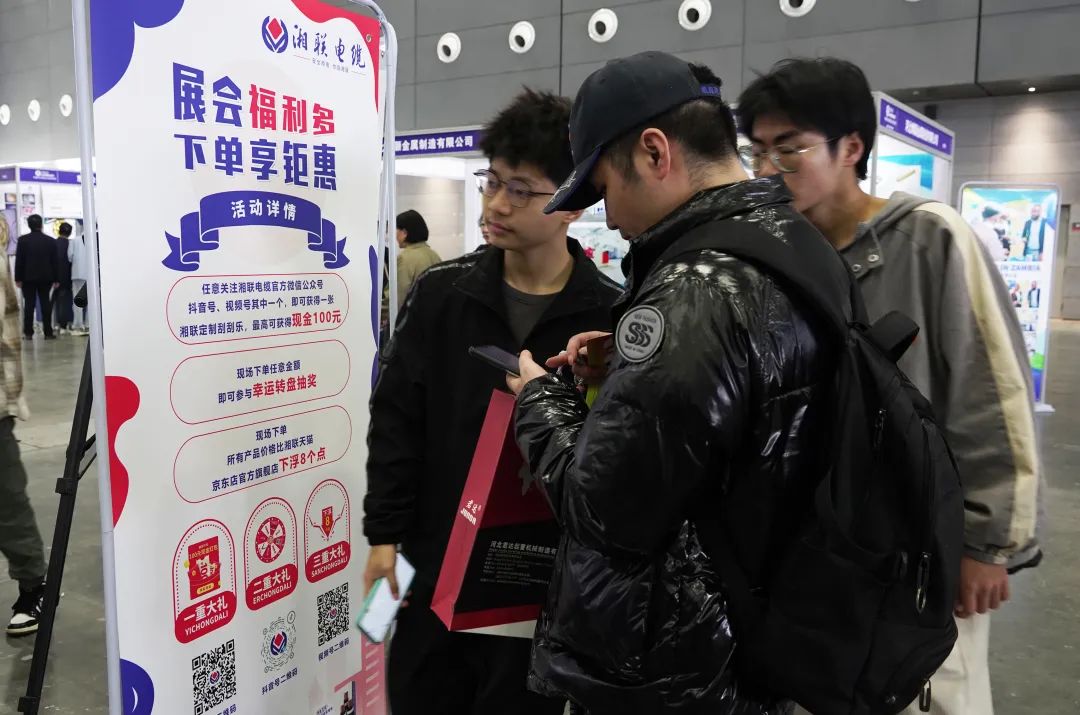 本次展覽,湘聯(lián)電纜展臺不僅在服務(wù)上下功夫,更是在價格與活動上集中發(fā)力,為本次展會專項申請了價格優(yōu)惠和商務(wù)筆記本、養(yǎng)生壺、電工鉗等多重好禮,推出下單抽獎等消費(fèi)福利,為客戶帶去切實的下單購線利益。
