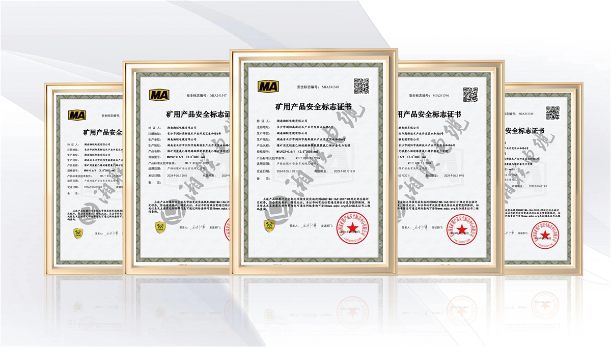 礦用電纜必須嚴(yán)格遵守國家及行業(yè)雙重標(biāo)準(zhǔn),需按照GB/T 12972《礦用橡套軟電纜》、MT818-2009《煤礦用阻燃電纜》生產(chǎn),都應(yīng)經(jīng)過安標(biāo)國家礦用產(chǎn)品安全標(biāo)志中心頒發(fā)礦用產(chǎn)品安全標(biāo)志證書,才能向市場(chǎng)出售 。近期,湘聯(lián)電纜的MVV-0.6/1(1.5~300)mm2煤礦用聚氯乙烯絕緣聚氯乙烯護(hù)套電力電纜、MYJV-8.7/10(25~300)mm2煤礦用交聯(lián)聚乙烯絕緣聚氯乙烯護(hù)套等6款電力電纜成功取得礦用產(chǎn)品安全標(biāo)志證書,其產(chǎn)品在阻燃、耐壓、抗拉強(qiáng)度等方面均達(dá)到行業(yè)標(biāo)準(zhǔn)。